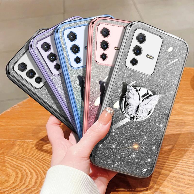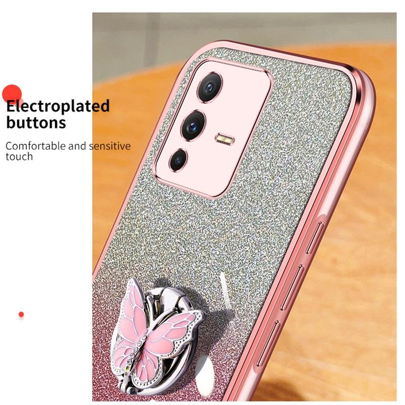 For vivo S12 Pro Plated Gradient Glitter Butterfly Holder TPU Phone Case(Purple)