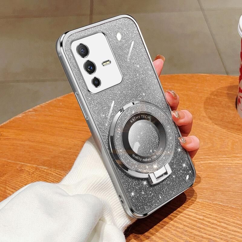 Θήκη τηλεφώνου TPU με στρογγυλό στήριγμα, γυαλιστερό ντεγκραντέ επιμετάλλωση για vivo S12 Pro / V23 Pro (Ασημί)