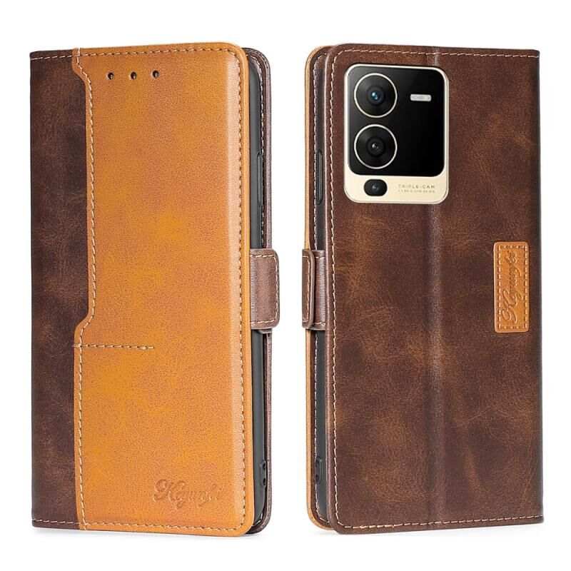 Για vivo S15 5G αντίθεση χρώμα πλευρά πόρπη δερμάτινη θήκη τηλέφωνο (Σκούρο καφέ και χρυσό)