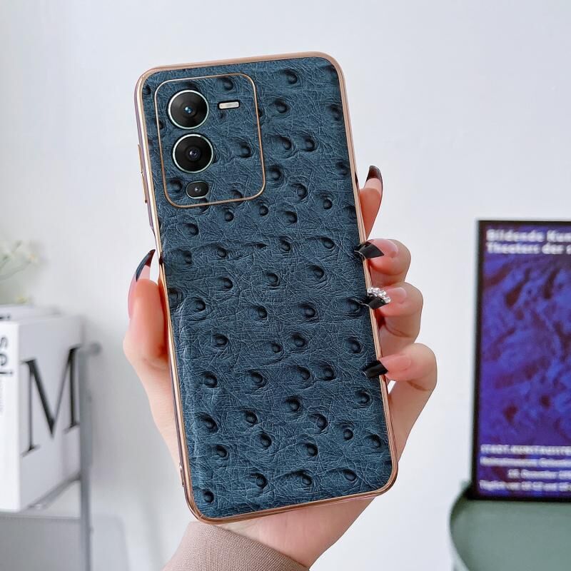 Θήκη τηλεφώνου από γνήσιο δέρμα για vivo S15 5G με υφή στρουθοκάμπου και νανοεπίστρωση (Μπλε)
