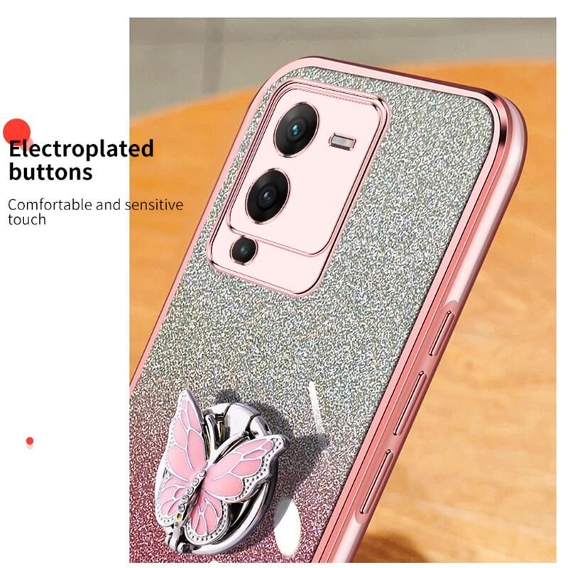 Θήκη τηλεφώνου TPU για vivo S15 με επιμετάλλωση, διαβαθμισμένη λάμψη, σχέδιο πεταλούδας (Ροζ)