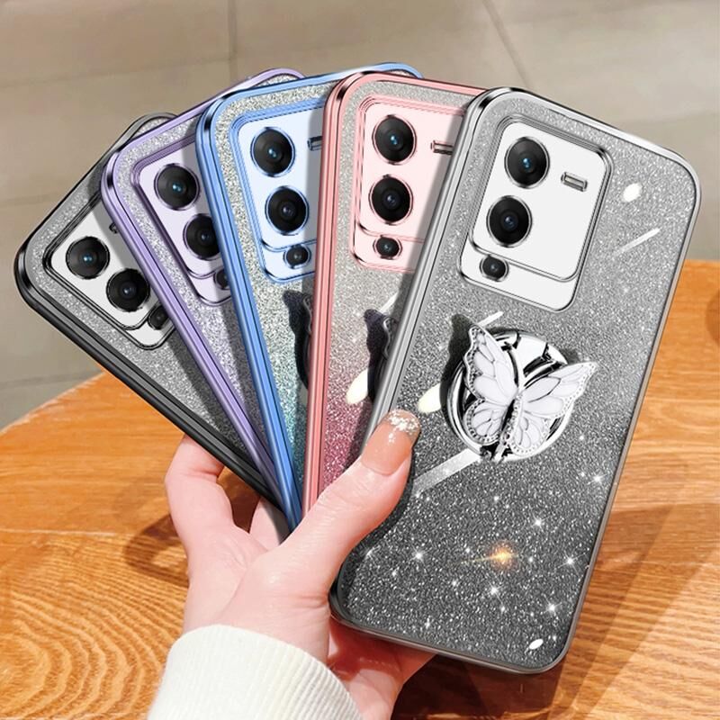 Θήκη τηλεφώνου TPU για vivo S15 Pro με επιμετάλλωση, διαβαθμισμένη λάμψη, σχέδιο πεταλούδας (Μπλε Σιέρρα)