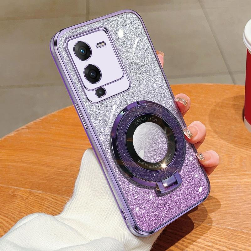 For vivo S15 Pro Plated Gradient Glitter Round Holder TPU Phone Case(Purple)