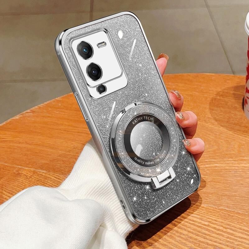 Θήκη τηλεφώνου TPU για vivo S15 Pro με επιμετάλλωση, διαβαθμισμένη λάμψη, στρογγυλή βάση (Ασημί)