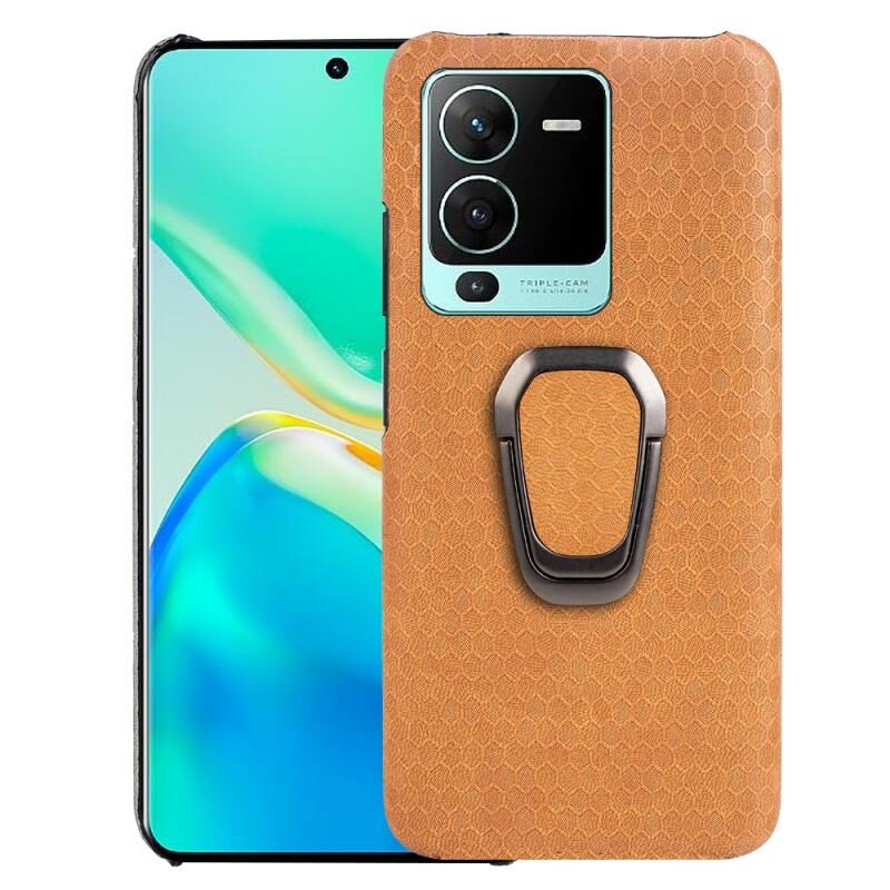 Για vivo S15 Pro Ring κάτοχος κηρήθρα PU υπόθεση τηλεφώνου (πορτοκαλί)