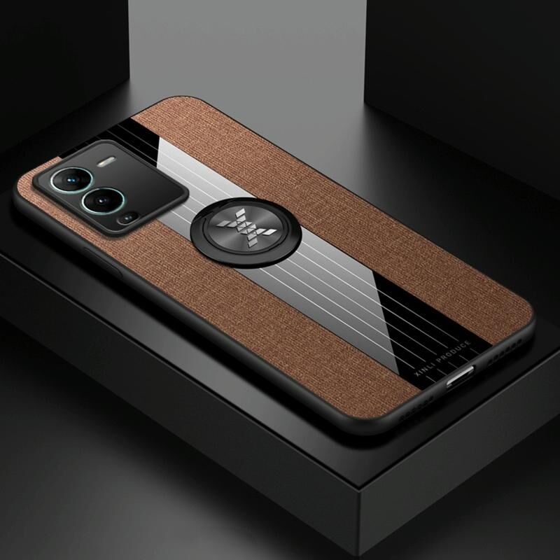 Για vivo S15 XINLI ραφή ύφασμα Textue TPU τηλέφωνο υπόθεση με δαχτυλίδι κάτοχος (καφέ) (Καφέ)