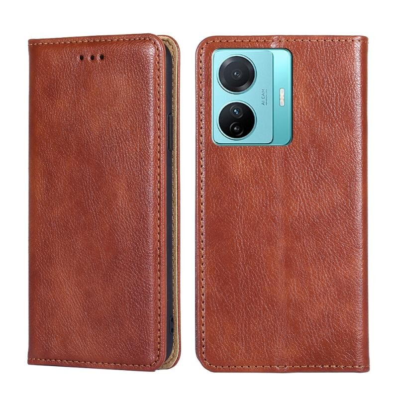 Για vivo S15e 5G / T1 Snapdragon 778G Γυαλιστερό λάδι στερεό χρώμα μαγνητική δερμάτινη θήκη τηλεφώνου (καφέ)
