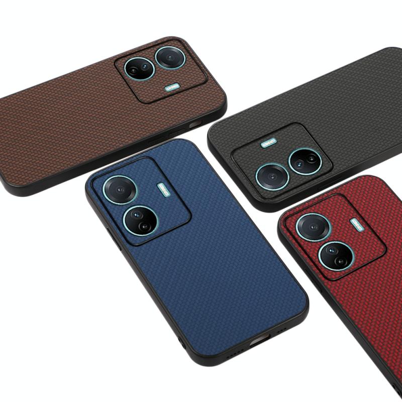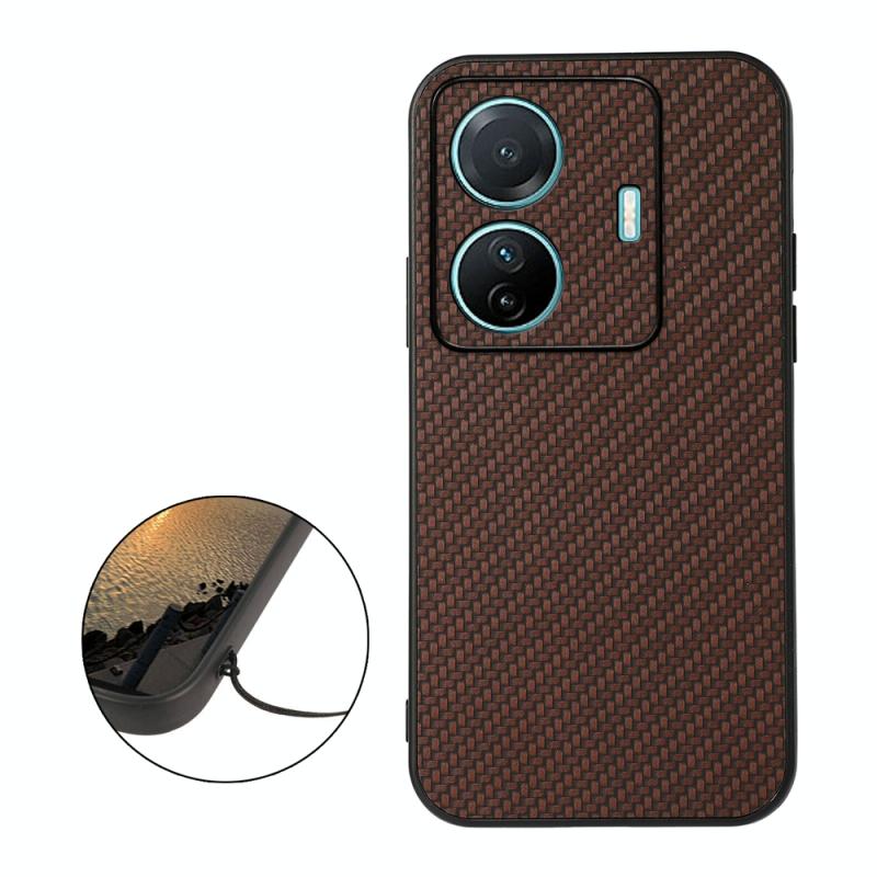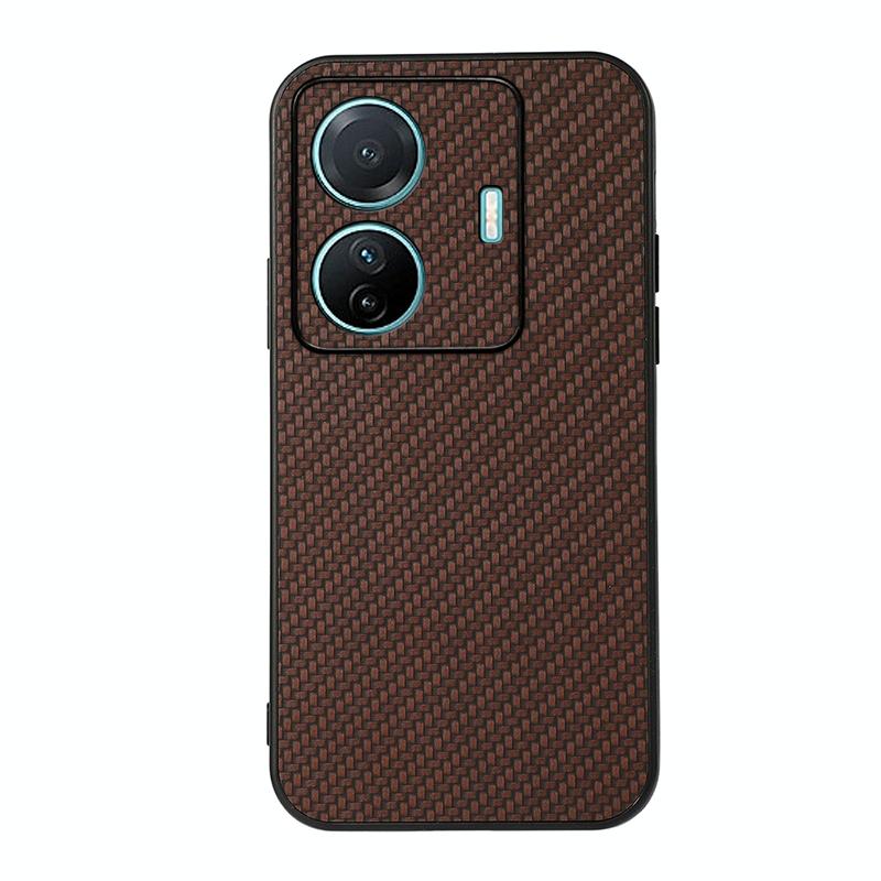 Θήκη τηλεφώνου PU με υφή ανθρακονήματος για vivo S15e (Καφέ)