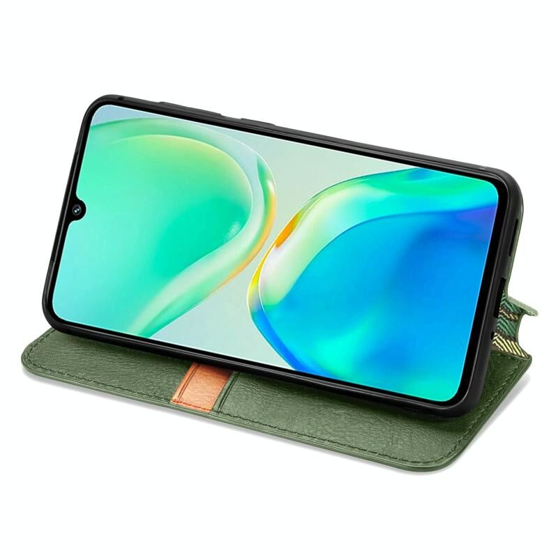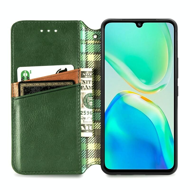 Για το vivo S15e Cubic Grid Πιεσμένο μαγνητικό δέρμα τηλέφωνο υπόθεση (πράσινο)