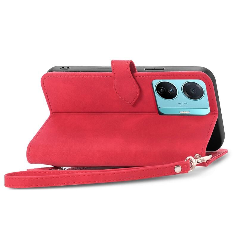 Για vivo S15e ανάγλυφο λουλούδι φερμουάρ δερμάτινη θήκη τηλεφώνου (Κόκκινο)