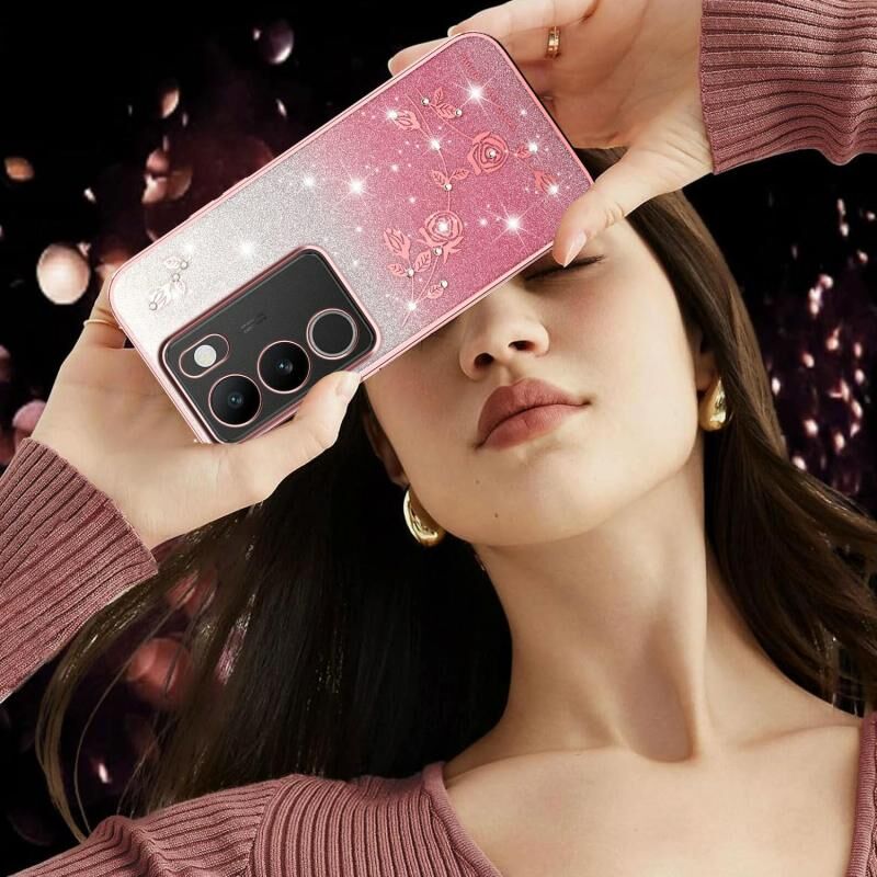 Θήκη τηλεφώνου για vivo S15e Gradient Glitter Flower All-inclusive (Μωβ)