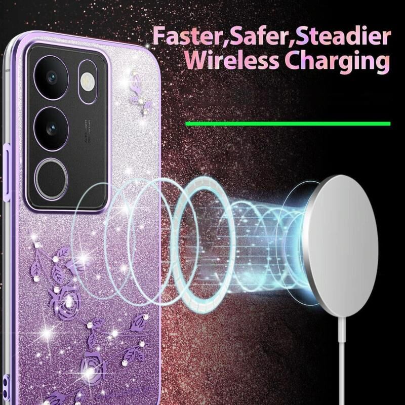 Θήκη τηλεφώνου για vivo S15e Gradient Glitter Flower All-inclusive (Μωβ)