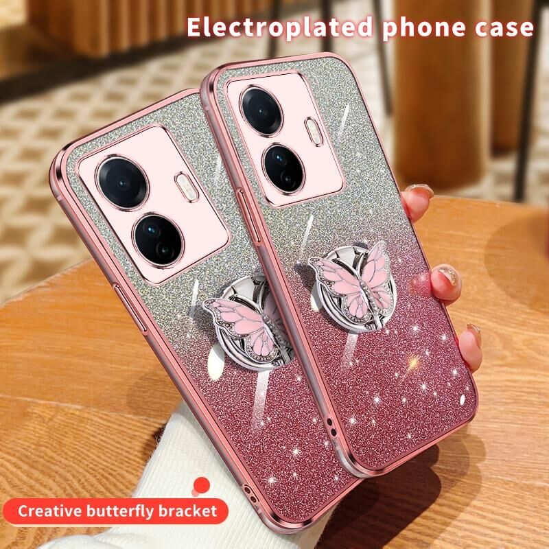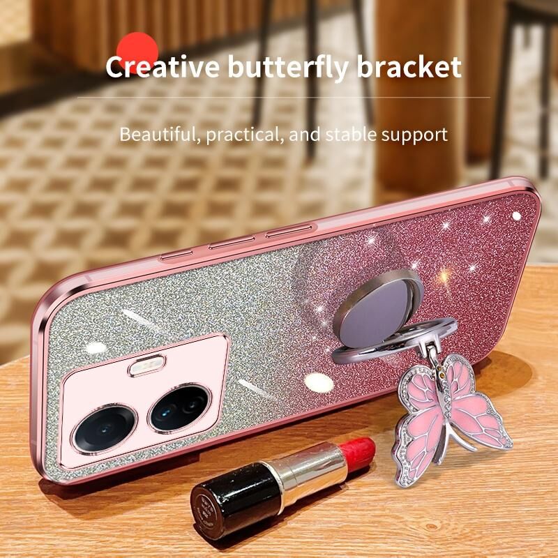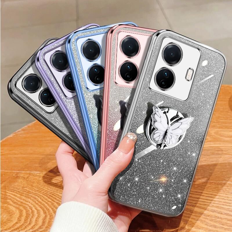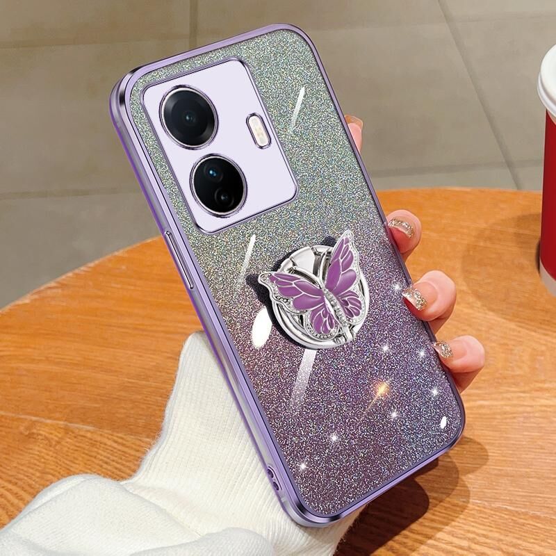 Θήκη τηλεφώνου TPU με σχέδιο πεταλούδας από πλάσμα και ιριδίζουσα λάμψη για vivo S15e / T1 Pro (Μωβ)