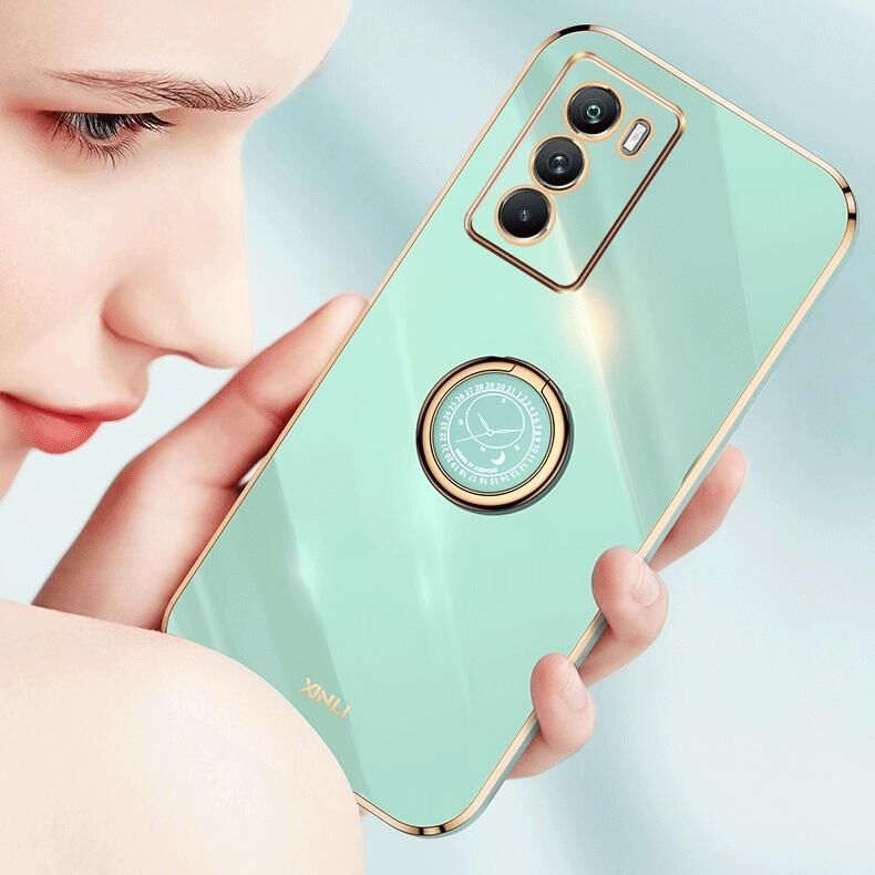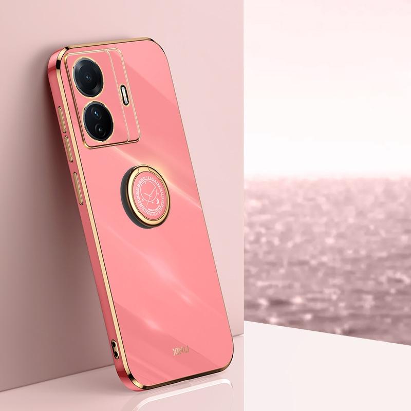 Θήκη τηλεφώνου για vivo S15e XINLI Straight Edge 6D Electroplate TPU με δακτύλιο στήριξης (Κόκκινο της αγριομηλιάς)
