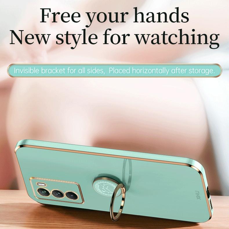 Θήκη τηλεφώνου για vivo S15e XINLI Straight Edge 6D Electroplate TPU με δακτύλιο στήριξης (Λευκό)