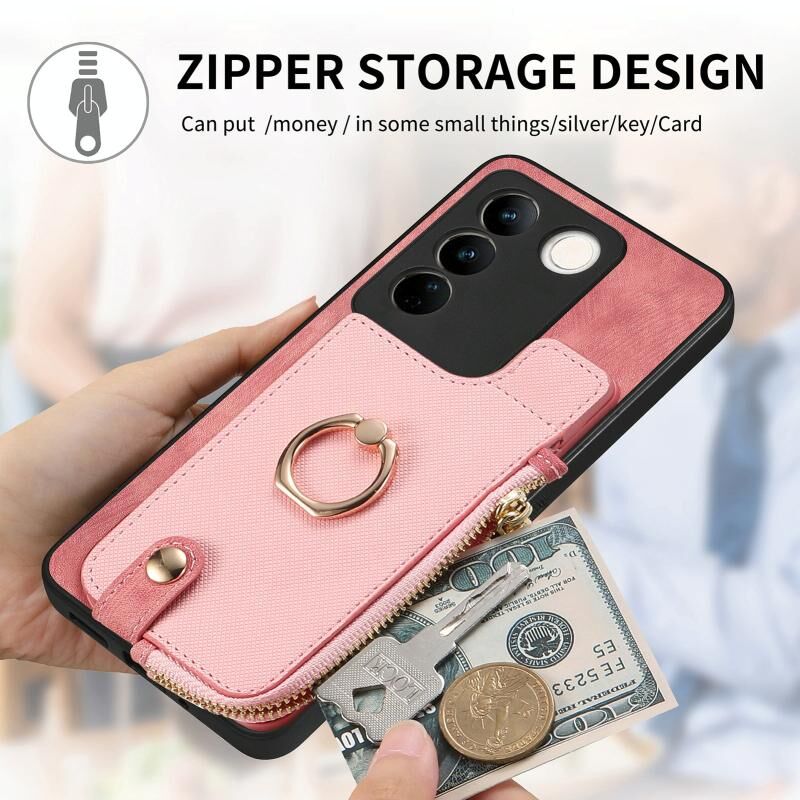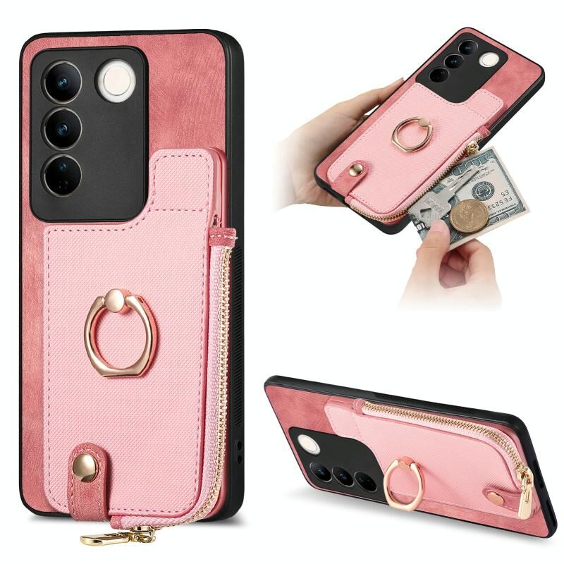 Για vivo S16 Cross Δερμάτινο δαχτυλίδι κάθετη φερμουάρ πορτοφόλι πίσω υπόθεση τηλεφώνου (Ροζ)