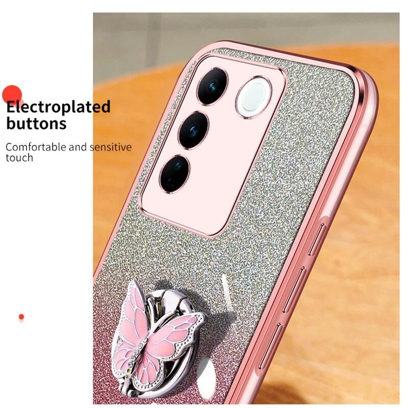 Θήκη τηλεφώνου TPU με σχέδιο πεταλούδας, γυαλιστερό ντεγκραντέ για vivo S16 / S16 Pro (Μπλε Σιέρρα)