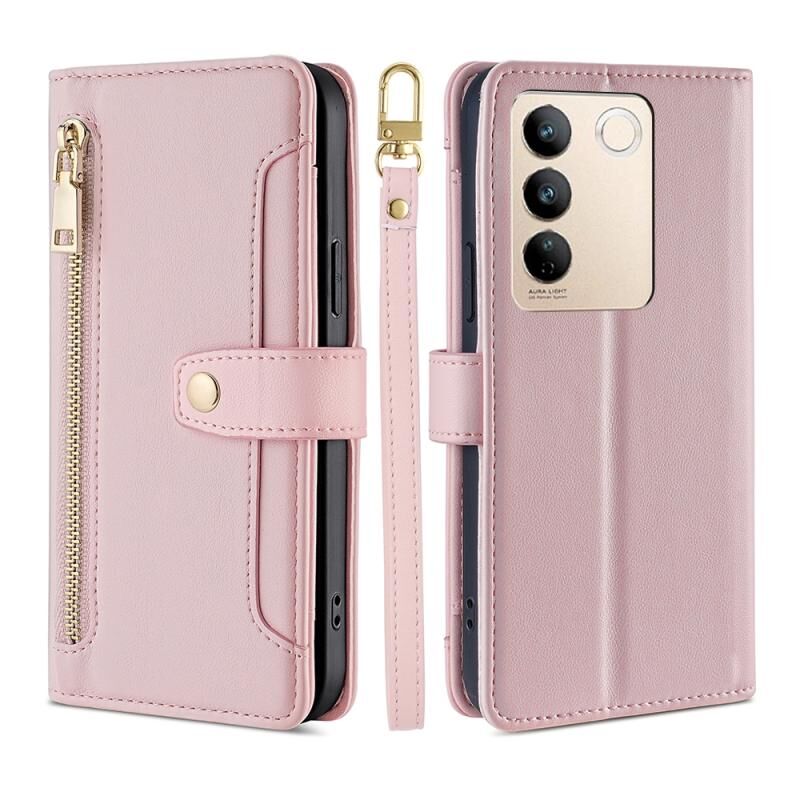 Για vivo S16 / S16 Pro Πρόβατα Υφή Cross-body φερμουάρ πορτοφόλι δερμάτινη θήκη τηλεφώνου (ρόζ)
