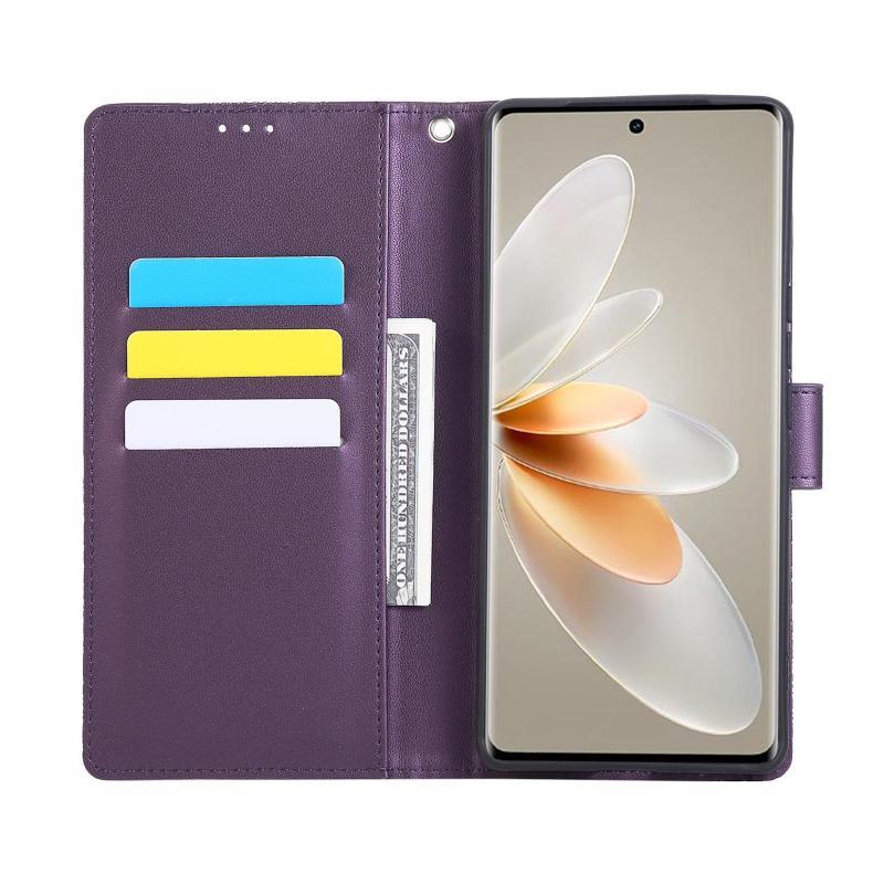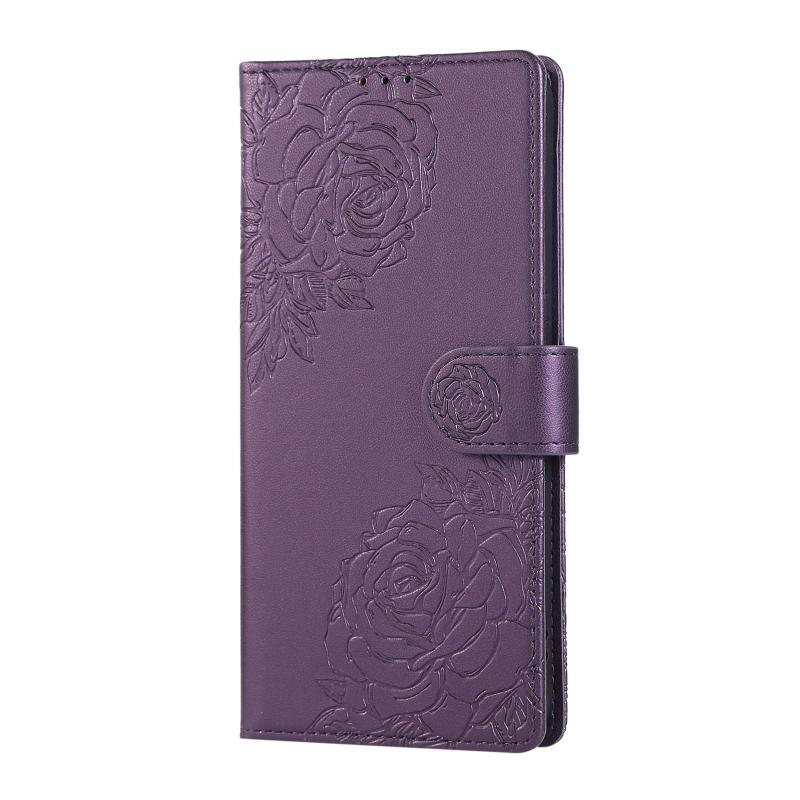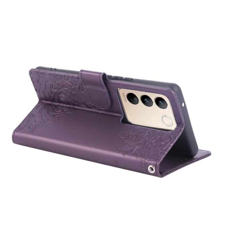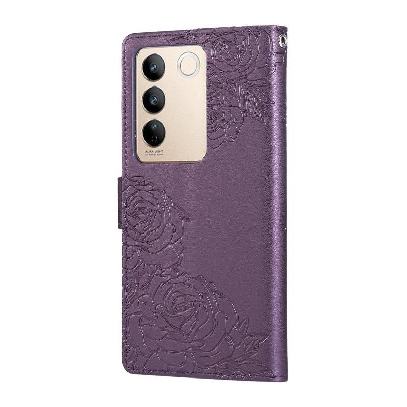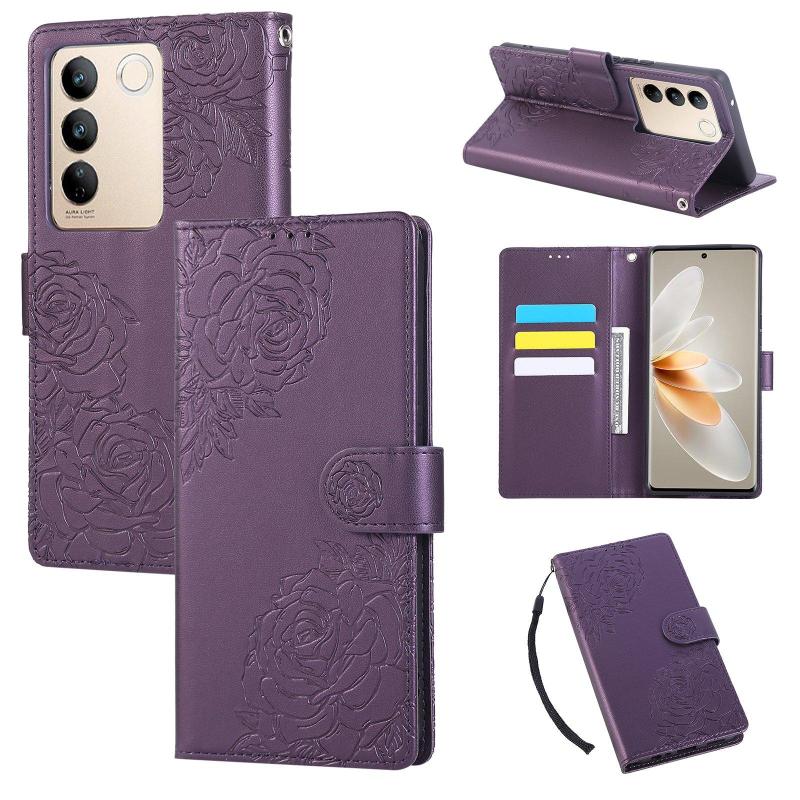 For vivo S16 / S16 Pro / V27 Rose Flower Embossed 3-Card Slots Leather Phone Case(Deep Purple)