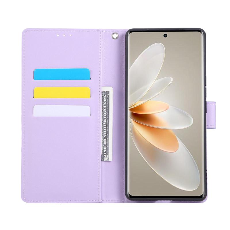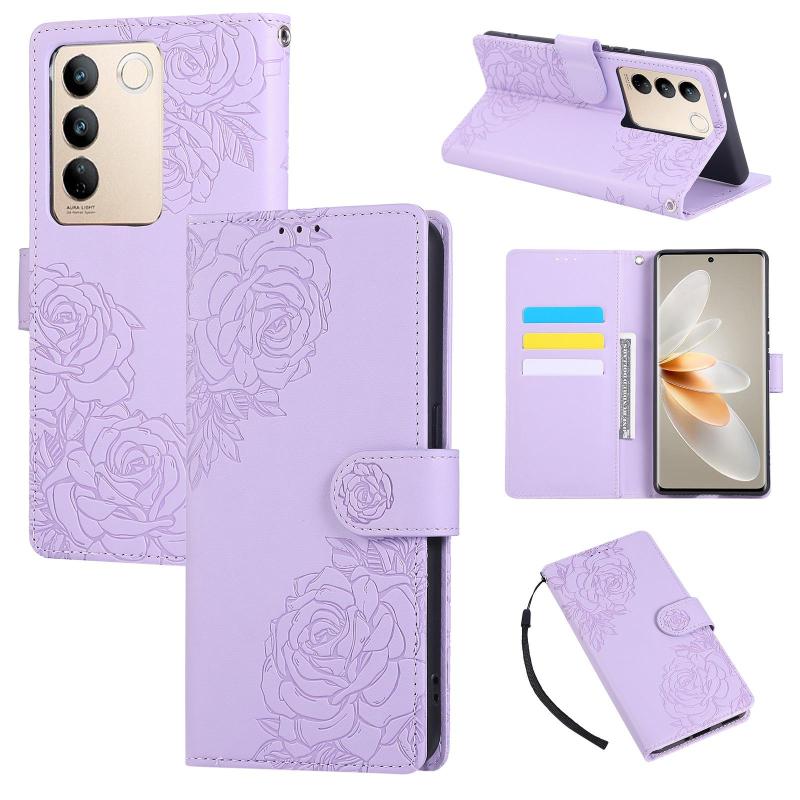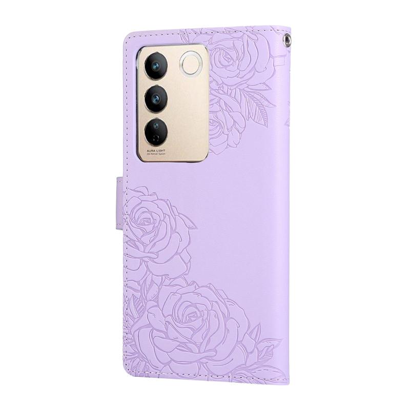 For vivo S16 / S16 Pro / V27 Rose Flower Embossed 3-Card Slots Leather Phone Case(Purple)