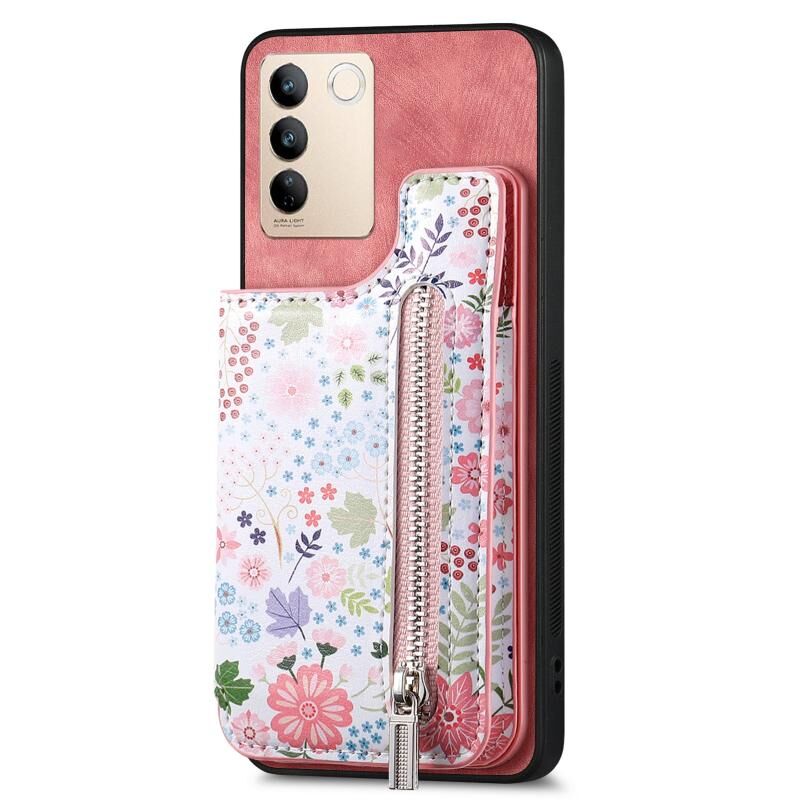 Για Vivo S16 / V27 Ρετρό ζωγραφισμένο φερμουάρ πορτοφόλι πίσω υπόθεση τηλεφώνου (ροζ)