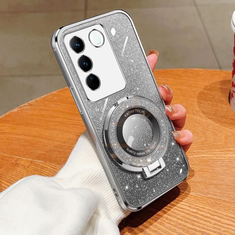 Θήκη τηλεφώνου TPU για vivo S16e με επιμετάλλωση, διαβαθμισμένη λάμψη, στρογγυλή βάση (Ροζ)