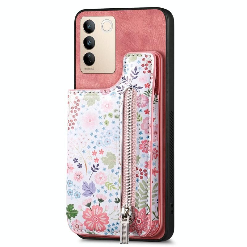 Για vivo S16e / V27e Ρετρό ζωγραφισμένο φερμουάρ πορτοφόλι πίσω υπόθεση τηλεφώνου (ροζ)