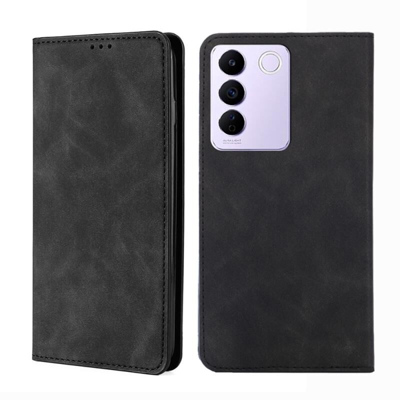 Για το vivo S16e / V27e Skin Feel μαγνητική οριζόντια Flip δερμάτινη θήκη τηλεφώνου (μαύρο)