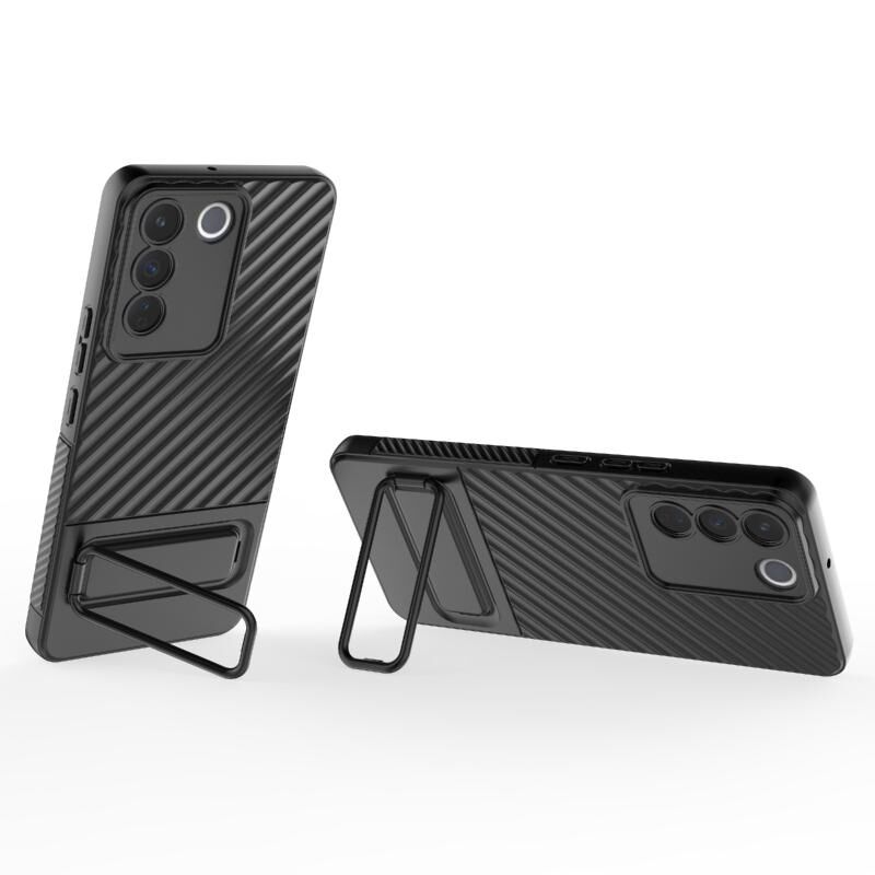 Θήκη τηλεφώνου TPU με κυματιστή υφή για vivo S16e με προστατευτική μεμβράνη φακού (Μαύρο)