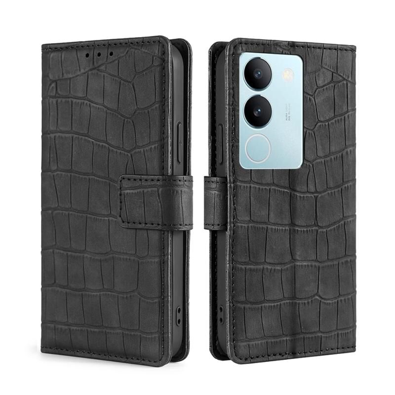 Θήκη τηλεφώνου από δέρμα με μαγνητικό κούμπωμα και υφή κροκόδειλου για vivo S17 5G / S17 Pro 5G (Μαύρο)