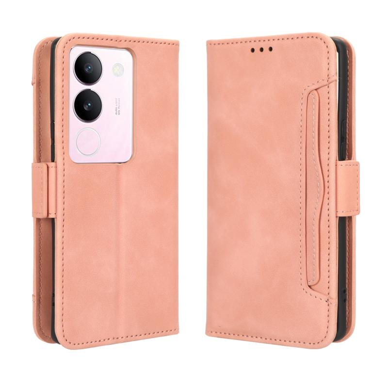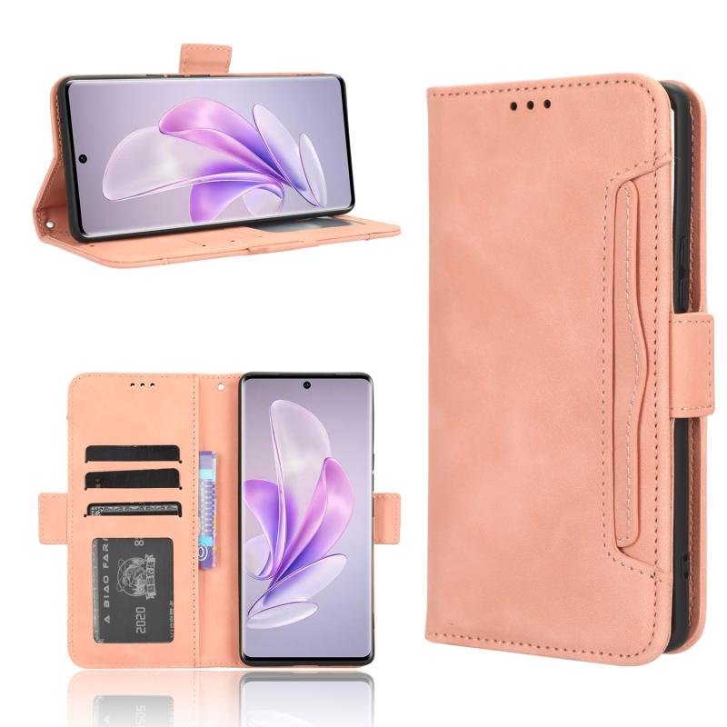 Θήκη τηλεφώνου από δέρμα με υφή μοσχαριού και θήκες καρτών για vivo S17 5G / S17 Pro (Ροζ)