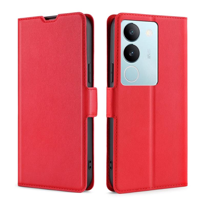 Θήκη τηλεφώνου δέρμα Flip οριζόντια με πλευρική αγκράφα τάσης, εξαιρετικά λεπτή για vivo S17 5G (Κόκκινο)