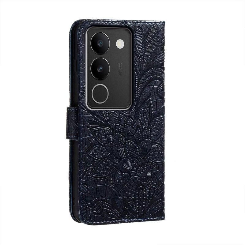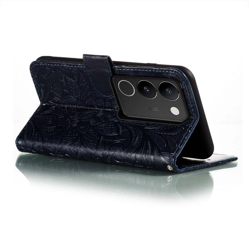 Για vivo S17 Lace λουλούδι ανάγλυφο Flip υπόθεση τηλεφώνου δέρμα (σκούρο μπλε)