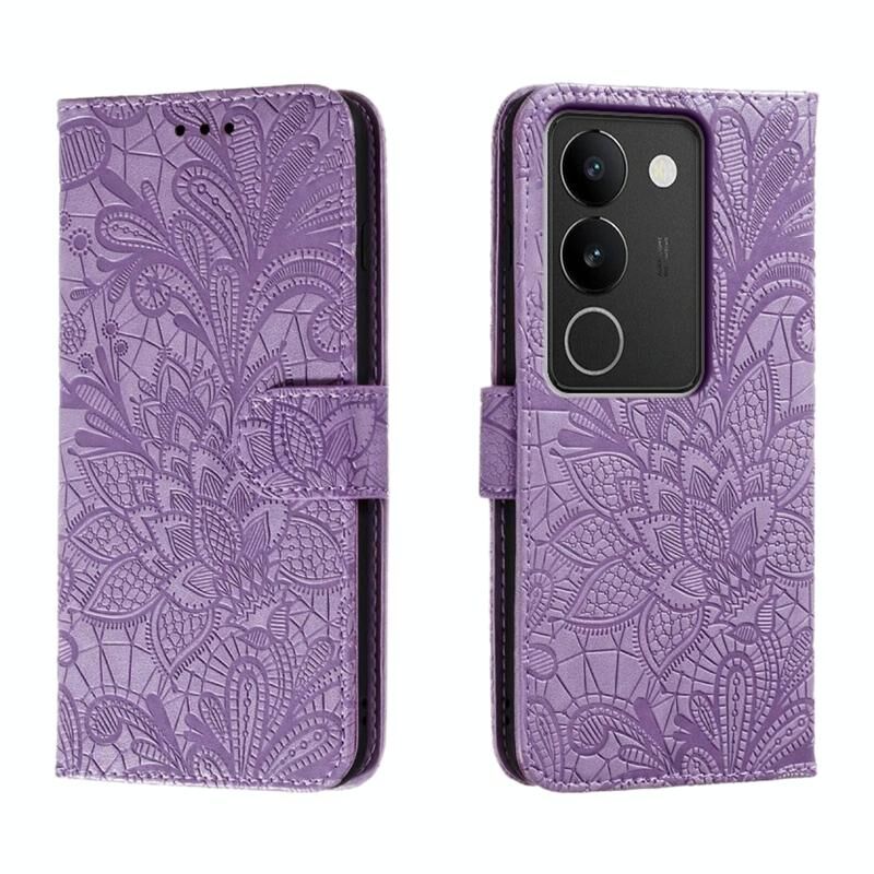 8. Σχεδιασμός με ανάγλυφο λουλούδι από δαντέλα, Η θήκη είναι κατασκευασμένη από προσεκτικά επιλεγμένο δέρμα που της δίνει μια εκλεπτυσμένη και πολυτελή εμφάνιση και αίσθηση.