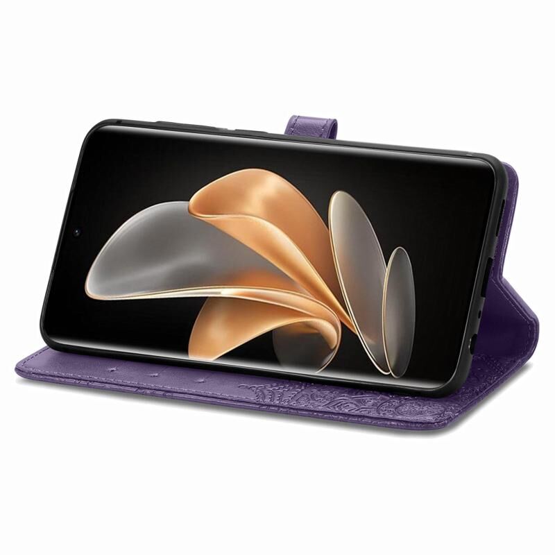 Για το vivo S17 Mandala λουλούδι ανάγλυφο δερμάτινη θήκη τηλεφώνου (μωβ)