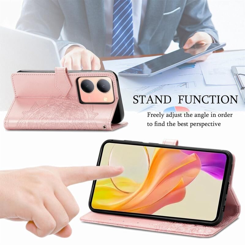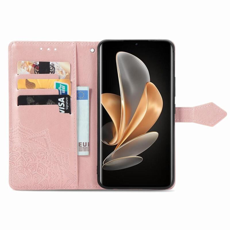 Για το vivo S17 Mandala λουλούδι ανάγλυφο δερμάτινη θήκη τηλεφώνου (Rose Gold)