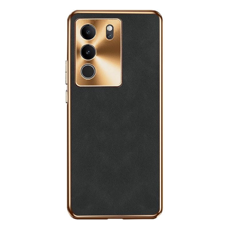 For vivo S17 Pro Electroplating Lambskin Leather Phone Case(Black)