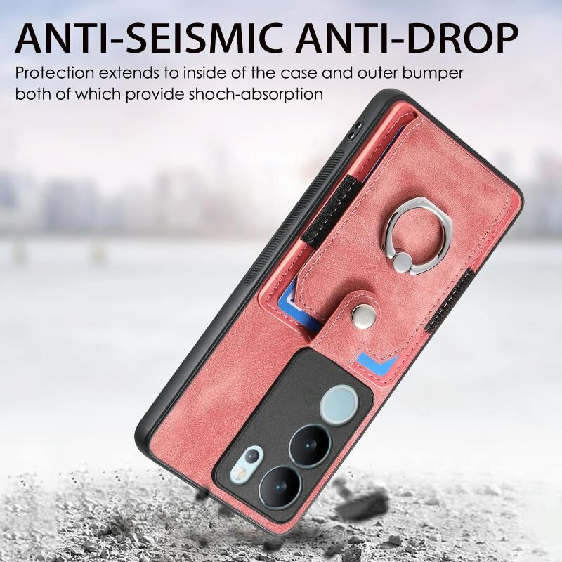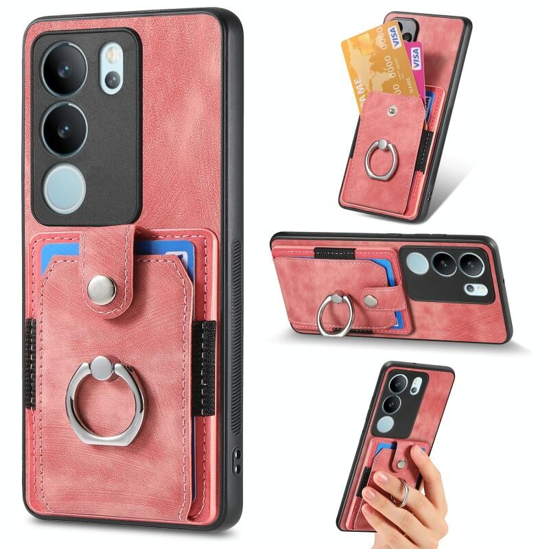 Για το vivo S17 Pro Retro δέρμα αίσθηση δαχτυλίδι κάρτας πορτοφόλι υπόθεση τηλεφώνου (ροζ)