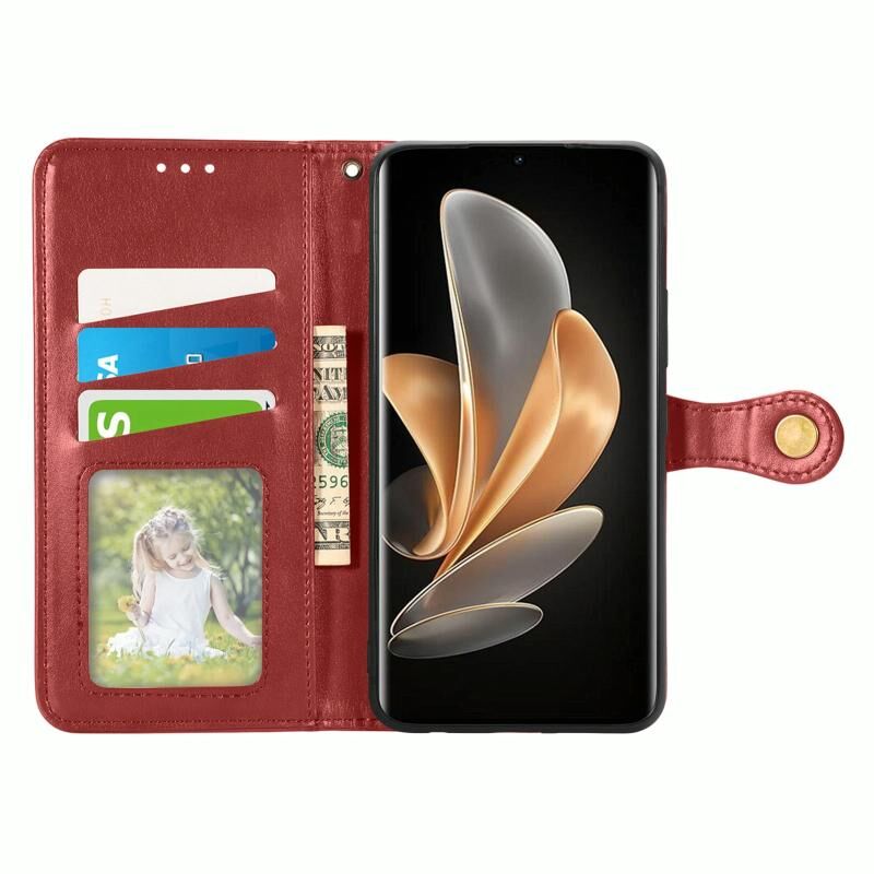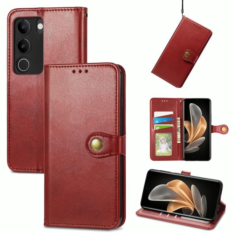 Για vivo S17 Ρετρό στερεό χρώμα πόρπη δερμάτινη θήκη τηλεφώνου (Κόκκινο)