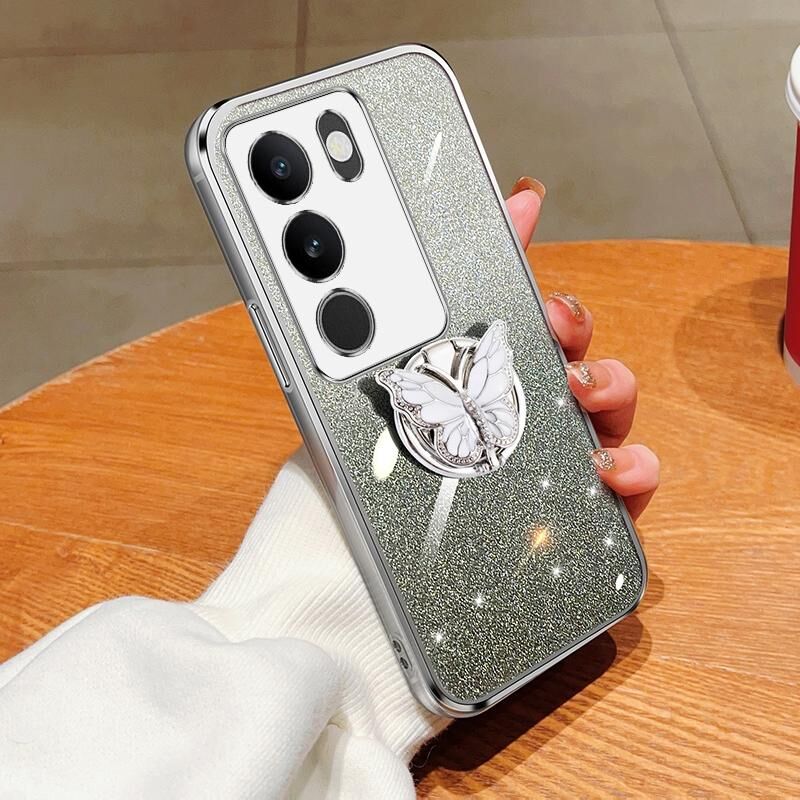 Θήκη τηλεφώνου TPU με σχέδιο πεταλούδας από γκλίτερ με επιμετάλλωση και διαβάθμιση χρώματος για vivo S17 / S17 Pro (Ροζ)