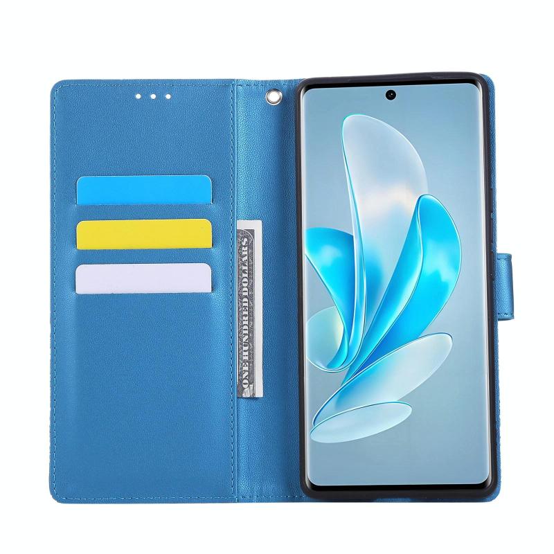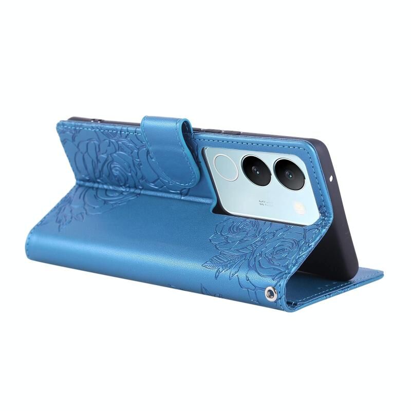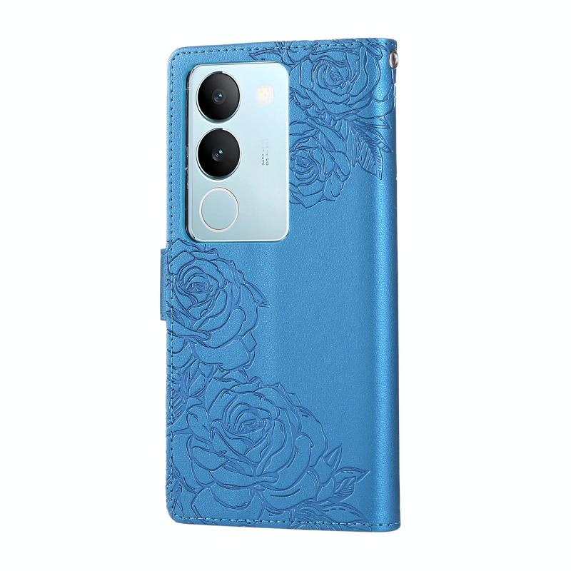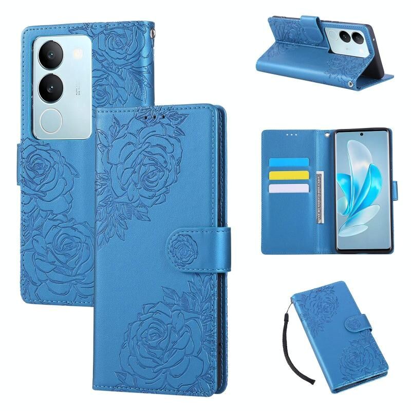 For vivo S17 / S17 Pro / S17t Rose Flower Embossed 3-Card Slots Leather Phone Case(Blue)