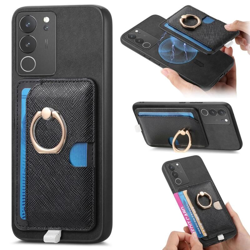 Θήκη τηλεφώνου MagSafe για vivo S17 / S17 Pro / V29 Pro 5G με σχέδιο ρετρό σταυρού, δέρμα, ενσωματωμένη θήκη καρτών στο πλάι (Μαύρο)