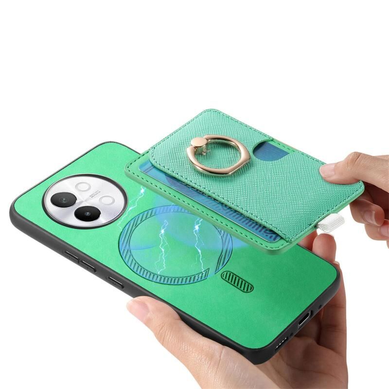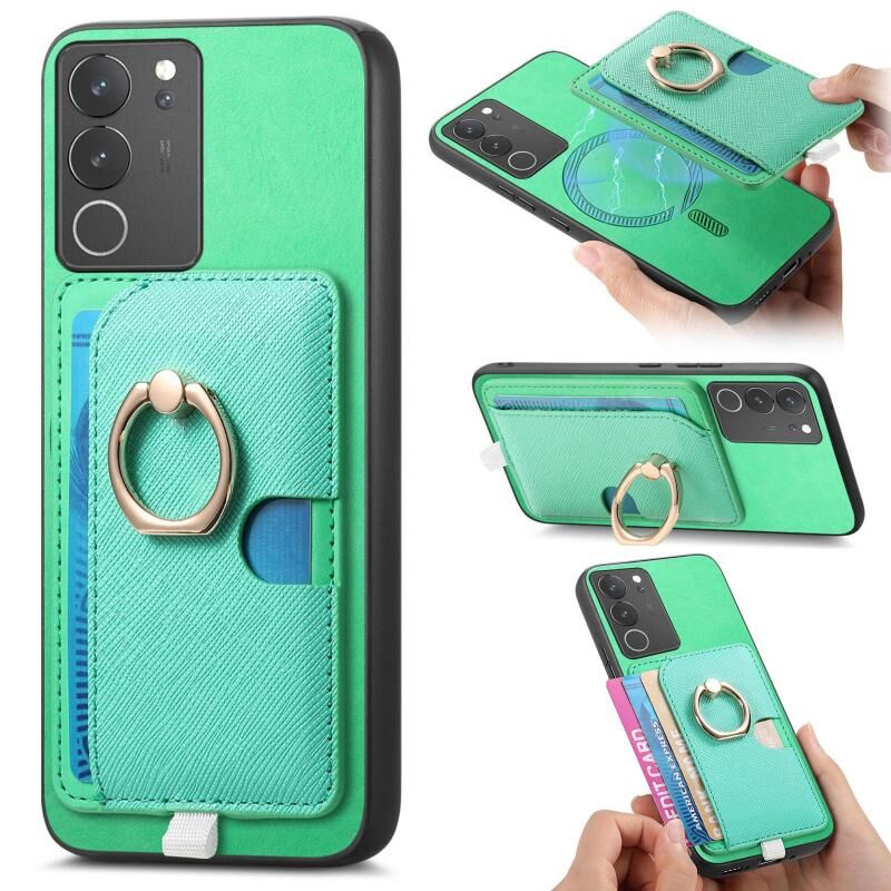 Θήκη τηλεφώνου MagSafe για vivo S17 / S17 Pro / V29 Pro 5G με σχέδιο ρετρό σταυρού, δέρμα, ενσωματωμένη θήκη καρτών στο πλάι (πράσινο)