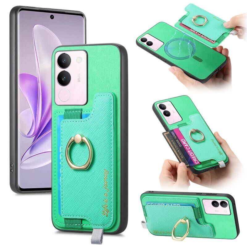 Θήκη τηλεφώνου για vivo S17 / S17 Pro / V29 Pro 5G με δερμάτινο κρίκο, μαγνητική σύνδεση τύπου Retro, θήκη κάρτας (πράσινο)