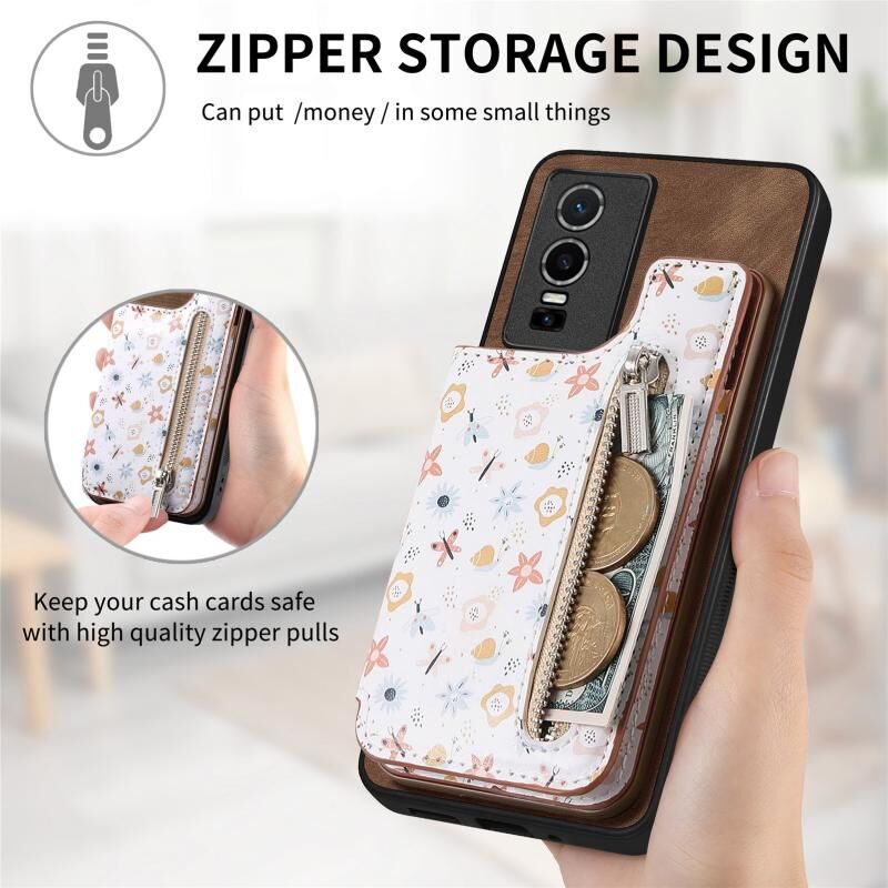 Για vivo S17 / S17 Pro / V29 Ρετρό ζωγραφισμένο φερμουάρ πορτοφόλι πίσω υπόθεση τηλεφώνου (καφέ)