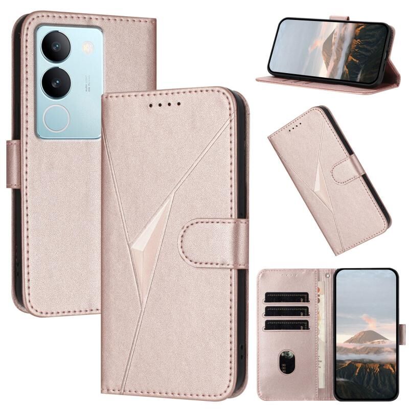 Για vivo S17 Τρίγωνο μοτίβο πόρπη κούμπωμα δερμάτινη θήκη τηλεφώνου (Rose Gold)
