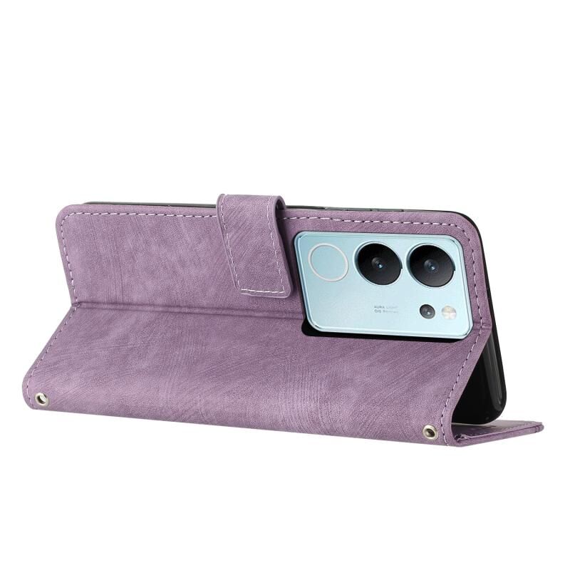 Θήκη τηλεφώνου από δέρμα με υφή και ραβδωτό σχέδιο για vivo S17 / vivo S17 Pro με κορδόνι (Καφέ)