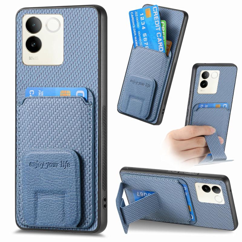 For vivo S17E 5G Carbon Fiber Card Bag Fold Stand Phone Case(Blue)