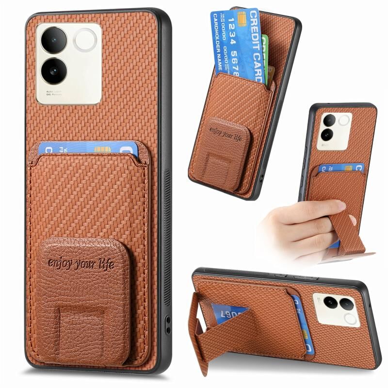 Θήκη τηλεφώνου για vivo S17E 5G από ανθρακονήματα με θήκη κάρτας και βάση στήριξης (Μπλε)