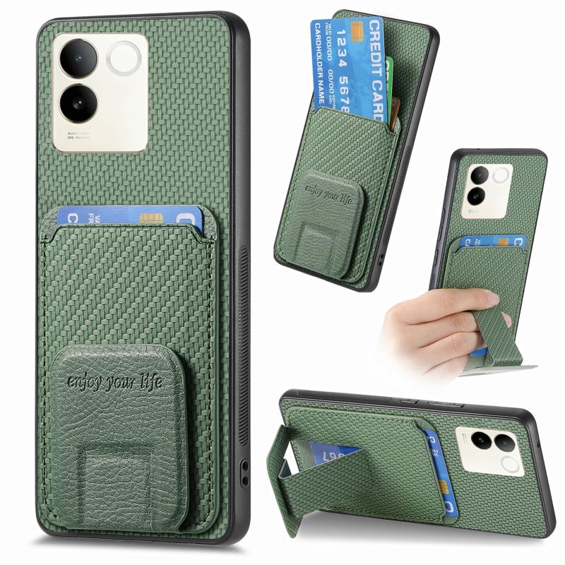 For vivo S17E 5G Carbon Fiber Card Bag Fold Stand Phone Case(Green)